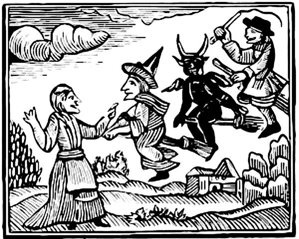 Рис. 7. Ведьмы на метле и дьявол. Опубликовано в «The History of Mother Shipton», Aldermanbury, около 1750 г.