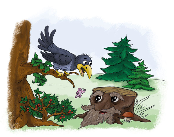 – Кар, кар! Ну где твой сынок? – спросила у трухлявого пня ворона. Пень и был старым лешим, ему было удобно быть пнем, его никто не трогал, и он дремал себе у болота, никому не мешая. Пень вдруг зашевелился, закряхтел, откашлялся.