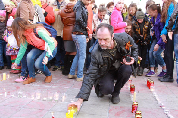 Мерцают свечи и лампады,Как звёзды Млечного Пути.К подножью обелиска СлавыВсе поколения пришли.Детишки, школьники, подростки —Алданцы, жёны и мужья.Потомки тех, кто воевали,На стеле есть их имена.Минута тишины в молчанье,Ком в горле, у иных слеза.Мы помним всех и всё, что было,И не забудем никогда.Минута молчания