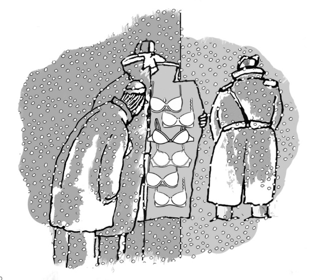 Самоё козырное место базара – входные ворота, территория цыган. Толстые горластые тётки в цветастых юбках с золотыми улыбками советских рокфеллеров – «королевы торговли». Трясут полиэтиленовыми пакетами Beriozka24 (Берёзка), Монтана, Пугачёва. Хит продаж – с грудастыми ковбойскими девчонками, тугие задницы которых упакованы в джинсы Lee – доходит в цене до шести рублей; Аллу Борисовну делят надвое – по трёшке, что делать: sex sales (англ. – секс продаёт). Другой их ходовой товар – жвачка. «Лёлек и Болек» из Польши, «Kalev» из Прибалтики и очень редко – штатовский «Дональд Дак». Когда открылось производство в Москве, начали спекулировать и нашей – производства «РотФронт»: мятной, апельсиновой и клубничной. Самопальная тушь для ресниц, хна для окраски волос, помада, колготки.