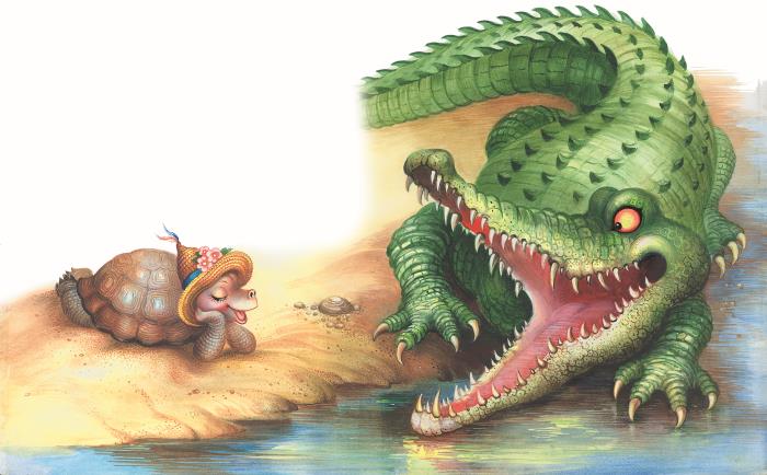 Голова болит, болит… —пела Черепаха, не замечая Крокодила. И вдруг – услышала еле слышное хехеканье: