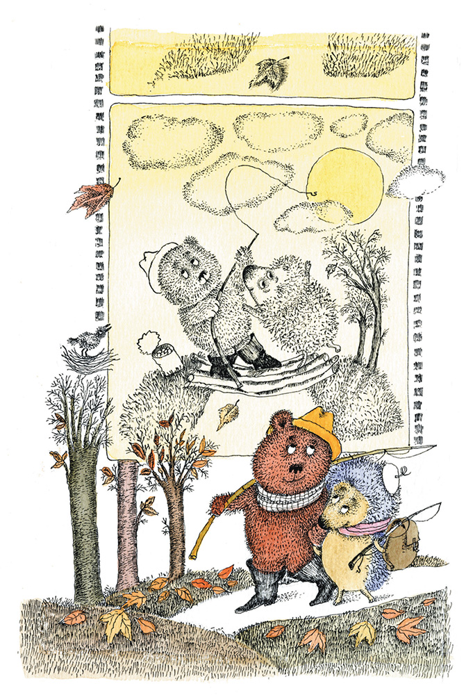 Когда пришла пора птицам улетать на юг и уже давно увяла трава и облетели деревья, Ёжик сказал Медвежонку: