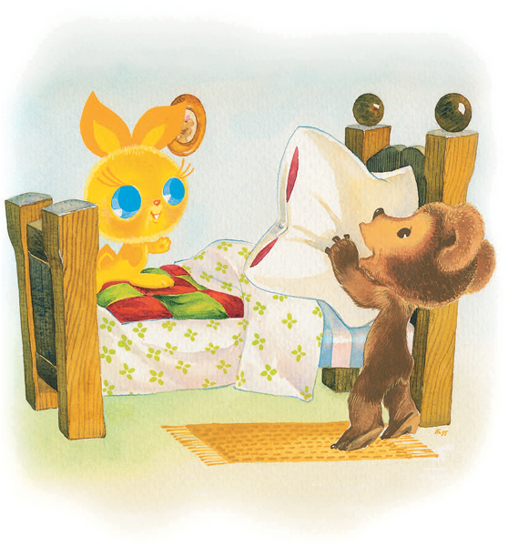 – Сперва застелим постель, – сказал Солнечный Заяц и прыгнул на кровать.