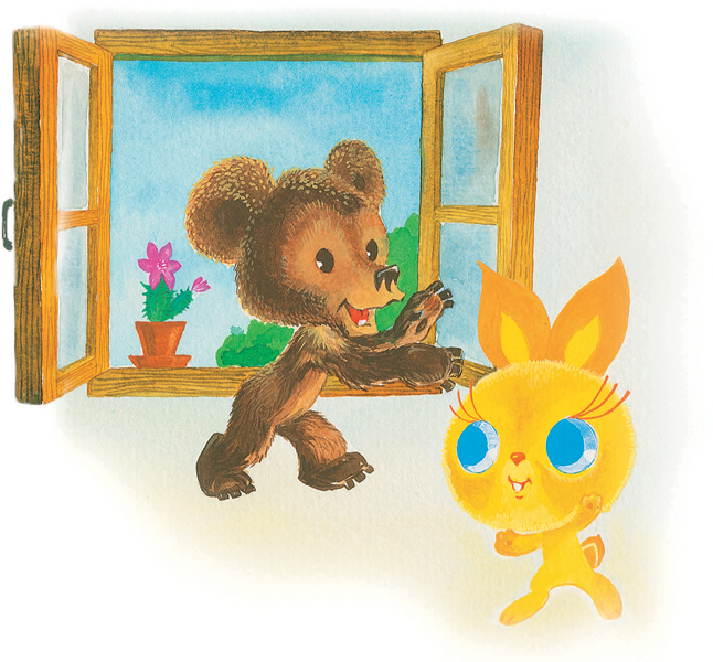 – Теперь откроем окно! Медвежонок открыл окно.