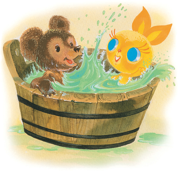 – Переходим к водным процедурам! – сказал Заяц и полез в ушат с водой.