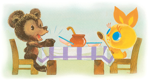 – Здравствуй, Медвежонок! – крикнул Ёжик. – Вы уже завтракаете?