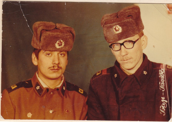 Подробно вспоминать сил сейчас нет; помяну только, что в такие альбомы мало было вклеить фотографии – надо было: раз) изукрасить сами страницы. Самое применяемое было при сём – аналог аэрографа: два пластмассовых корпуса от ручки прикручивались на коробок спичек, узкими отверстиями в непростой стык; потом один конец опускался в тушь (жидкую гуашь; иных красок не имели…), а в другой конец художник художественно дул, и из сопряжённой трубки вылетали капли, более или менее эстетично покрывая страницу; два) украсить обложку. У нас, например, самое распространённое, желаемое и обусловленное каноном было изображение «краба», сиречь – армейская эмблема железнодорожных войск, изготовленная из самых разных подручных материалов (самый распространённый – раскатанная и вывернутая кишками наружу туба от пасты «Поморин», имевшая вид какбэ меди; чеканка на ней совершалась достаточно легко и делалась той же шариковой ручкой).