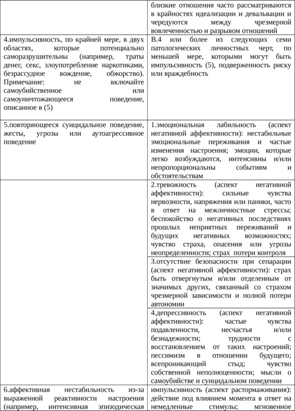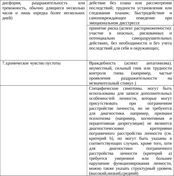 Таблица 6. Характеристика пограничного расстройства личности у подростков (продолжение)