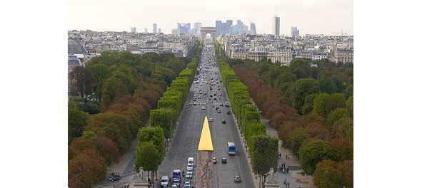 Париж, Елисейские поля. На переднем плане – верхушка Луксорского обелиска, в перспективе – Триумфальная арка.
