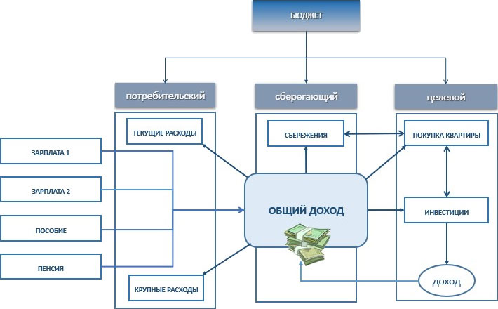 Таблица 3. Универсальная схема распределения финансовых потоков семейного бюджета