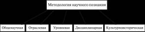 Однако наиболее важным в методологическом отношении является фиксация в каждой из областей науки ее вертикальной структуры, представленной ее различными уровнями: чувственное знание (данные наблюдений и экспериментов), эмпирическое знание, теоретическое знание, метатеоретическое знание (общенаучное и философское).