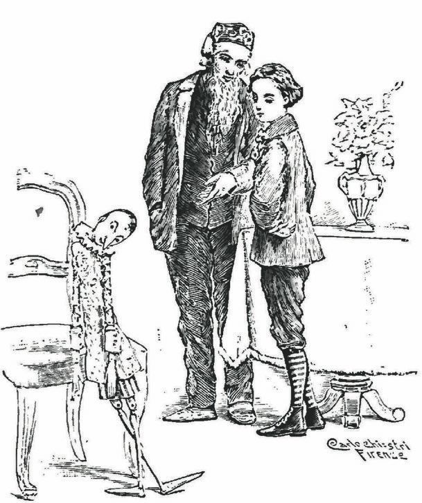 Первая иллюстрация к «Пиноккио. История деревянной куклы» Энрико Маццанти. 1883 г.