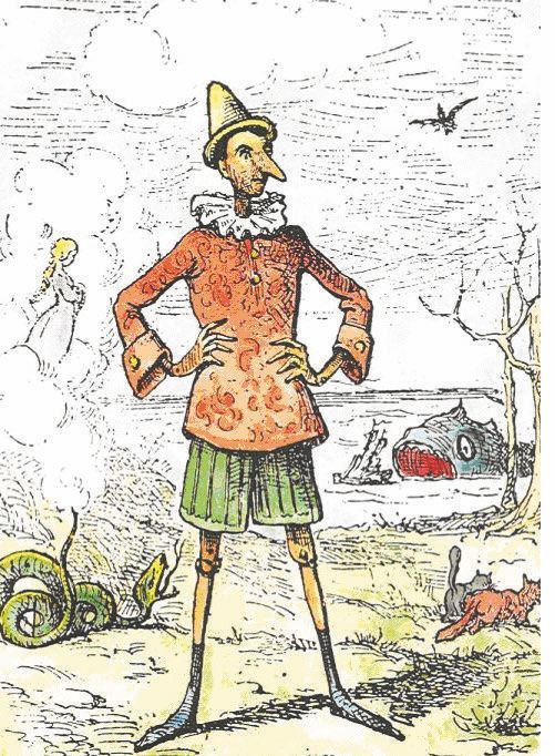К счастью, о его беде узнал знаменитый мастер Карло Бестульджи (еще один «папа Карло»?). О Бестульджи все говорили как о настоящем волшебнике. Бестульджи изобрел и смастерил для Пиноккио деревянные протезы ног, у которых и ступни, и даже пальцы на ступнях сгибались. Мастер сделал Пиноккио даже протез носа, который выглядел очень натурально, но был, пожалуй, длинноват.