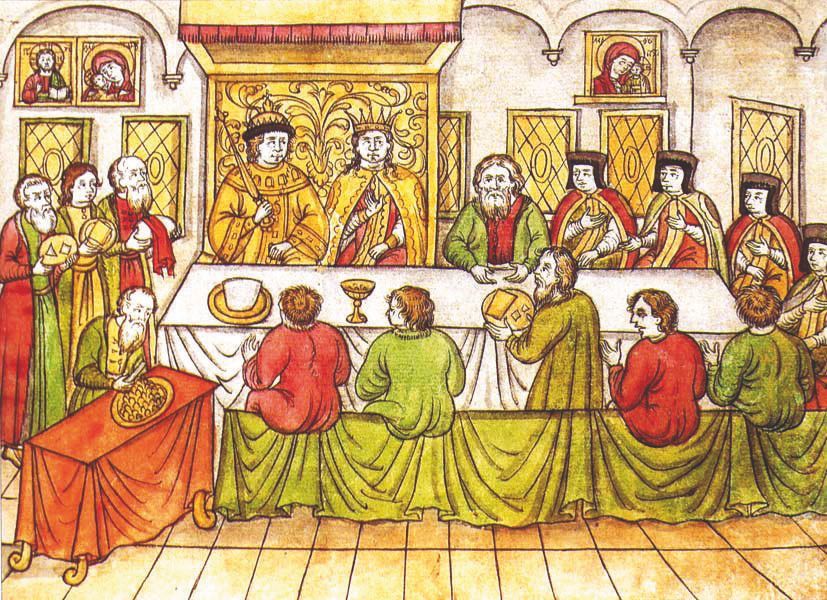 Брачный пир царя Михаила Федоровича и Евдокии Лукьяновны из рода Стрешневых. С миниатюры XVII в.