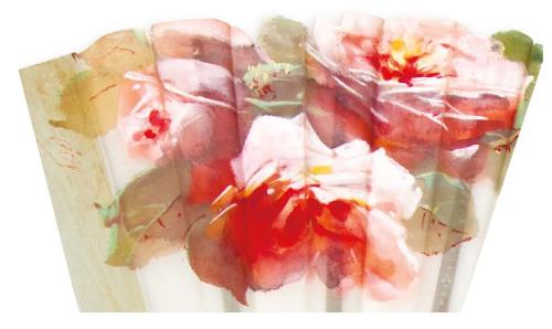 Заготовка для экрана веера, бумага, печать, раскрашенная гравюра.