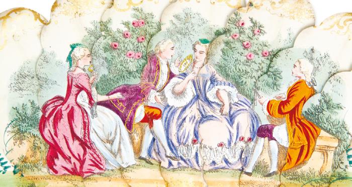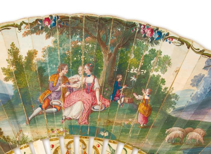 Пасторальные сцены часто изображали на веерах начиная с XVII века. Облик пастухов и пастушек менялся, они представали в одеждах античной эпохи, Ренессанса, барокко и рококо. Но в любом случае это были не настоящие селяне и селянки, а господа в нарядах «а la bergere». Но этот условный язык пасторали воспринимался естественно, как наивная любовная песенка.