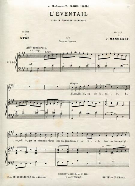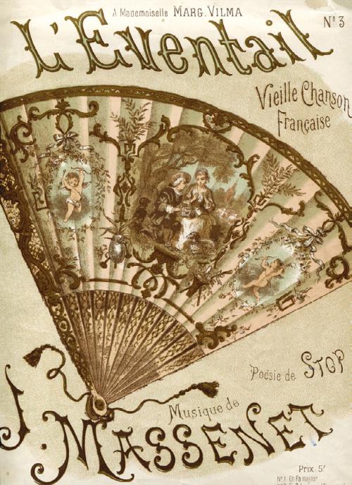 По странному совпадению недавно Ольга Николаевна нашла в нотном магазине французское издание романса Жюля Массне «Веер» на стихи неизвестного поэта. Композитор обозначил жанр сочинения так: «Старинная французская песня».