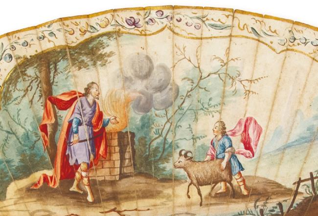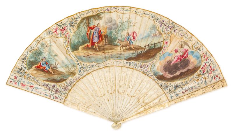 И точно, на экране веера был представлен эпизод из Ветхого Завета, когда Бог, испытывая веру Авраама, приказал ему принести в жертву любимого сына Исаака; в последний момент ангел остановил Авраама, и в жертву был принесен баран.