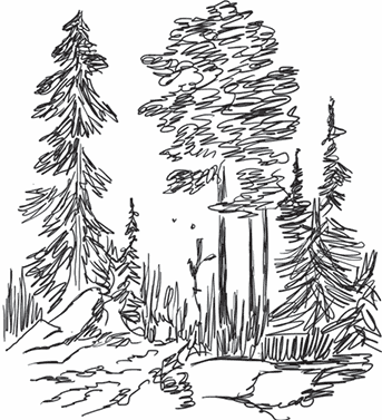 В полдень пошел дождь. Потемневшие ели грустно опустили мохнатые лапы; с них, точно слезы, катились редкие светлые капли. Серые, рваные тучи бежали беспорядочно, цепляясь за острые верхушки стройных пихт.