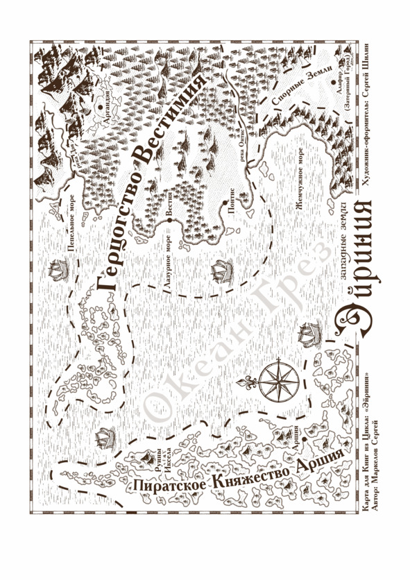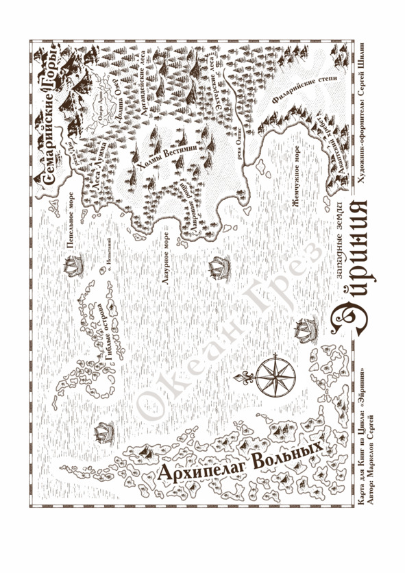 Эйриния – мирная и спокойная Страна, простирающая от берегов Океана Грез на западе, до Эфирского моря – на востоке, от Семарийский гор на севере и до южных Аэширских пустынь.