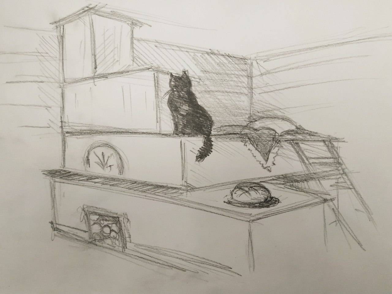 Теплые кирпичи. Одеяла. А потом на печку вспрыгнули Рычи-кусай и Кот ведьмы. Легли с двух сторон. И Девушка их обняла.