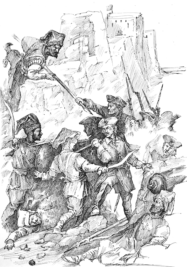 Штурм Азова в 1695 году. Схватка Меншикова в рядах русской гвардии с янычарами в проломе стены
