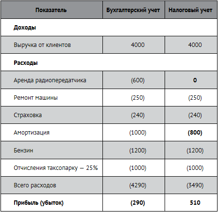 Поясним различия между бухгалтерским и налоговым учетом на следующем примере.