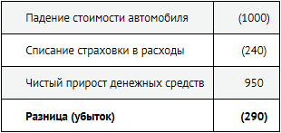 То есть роста денежных средств за первый год оказалось недостаточно, чтобы компенсировать износ автомобиля и списание страховки в расходы.