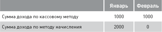 ПРИМЕР 2–2Кассовый метод и метод начисления для учета расходовПредположим, что в январе текущего года ЗАО «Винни-Пятачок» продало 20 банок меда по цене 100 руб. за банку. Одна половина проданных банок была оплачена сразу же, другая – только в феврале (НДС не учитывается).