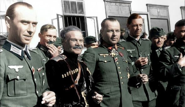 Германское командование, в свою очередь, не просто было радо использовать врагов большевиков в войне против СССР, но и подвело под это специальную теорию, согласно которой казаки якобы являлись не славянами, а потомками арийцев – готами. В результате сухопутные войска вермахта пополнились казачьими частями. Первая из таких частей была сформирована по приказу командующего тыловым районом группы армий «Центр» генерала фон Шенкендорфа в октябре 1941 года. Это был казачий эскадрон (102-я казачья сотня) под командованием бывшего майора Красной армии, донского казака Ивана Никитича Кононова. В конце 1942 года эскадрон переименовали в 600-й казачий дивизион. В нём уже было 9 эскадронов, артдивизион и 2300 человек личного состава.