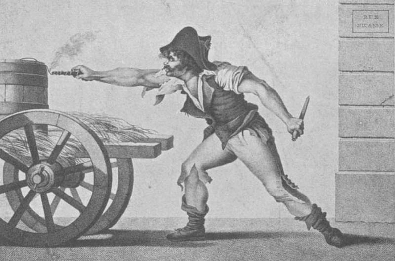 План оказался верным: на тихой улице Сен-Никез никто не обращал внимания на повозку с бочкой. А слабо тлеющий фитиль уже подкрадывался к начинке «адской машины»…
