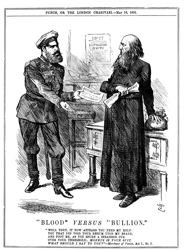 «Кровь» против «золота» (Александр III просит денег у еврея). Punch. 1891. May 16. P. 535