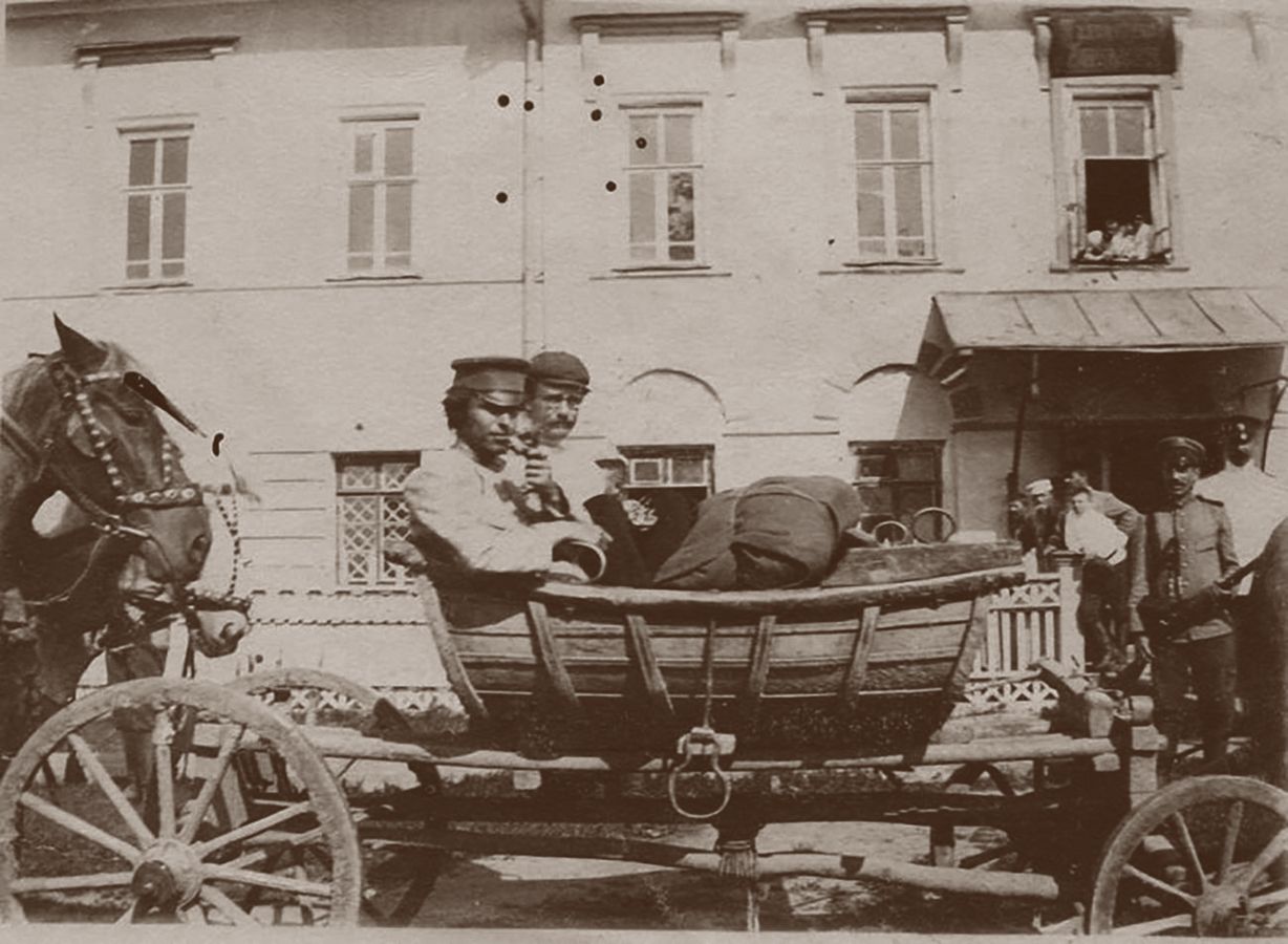 Анатолий Луначарский (в телеге на заднем плане) направляется в Кадниковскую тюрьму, где он заболел чесоткой. Март 1903 г.