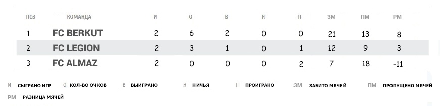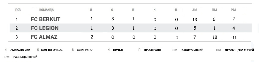 Второй матч был ФК Беркуты – ФК Алмаз. Беркуты обыграли своих соперников с разгромным счётом 13:6!