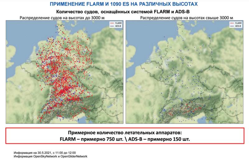 Для быстрого решения задачи обеспечения полётов пилотируемых и беспилотных воздушных судов в едином воздушном пространстве целесообразно локализовать в России апробированную в Европе систему FLARM. Использование этой системы европейскими ПВС и БВС на высотах ниже 3000 м на порядки превосходит использование аппаратуры стандарта 1090 ES596 (рисунок 6.21).