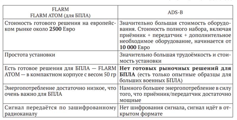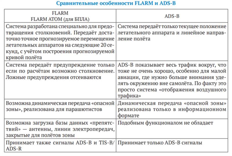 За 16 лет применения системы FLARM установлено более 50 000 комплектов оборудования, в том числе 20 000 – на БВС. Общий налёт воздушных судов с этой системой составляет более 40 млн часов. Оборудование может устанавливаться без интеграции в систему управления воздушным судном, что позволит избежать необходимости повторной сертификации (таблица 6.3).