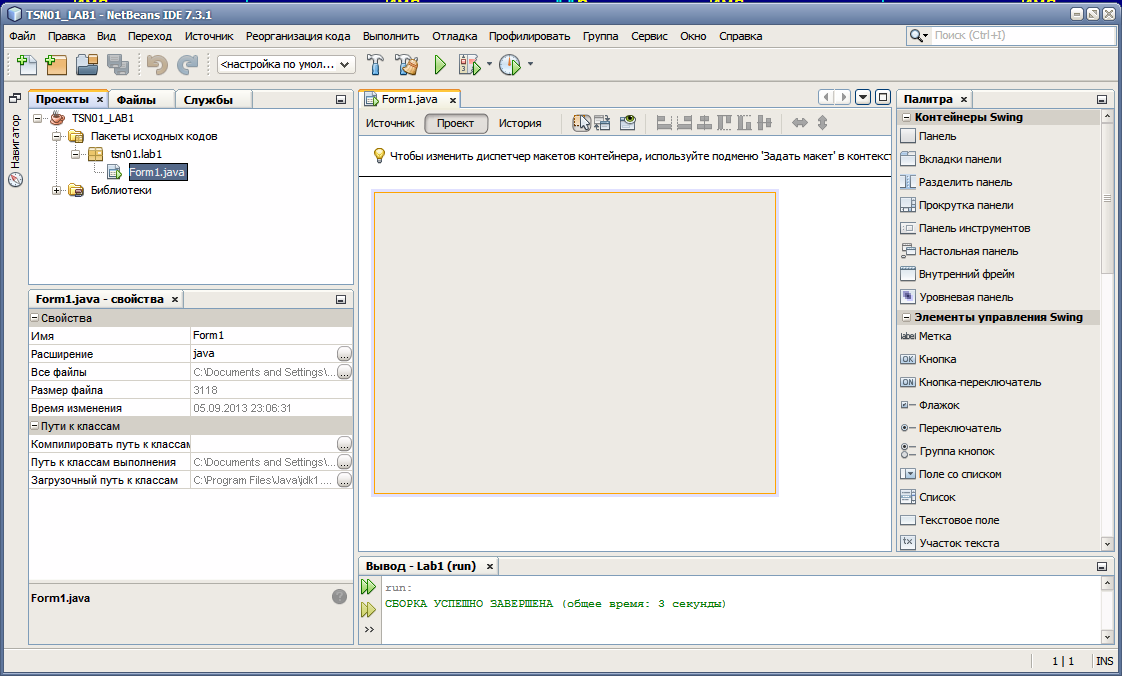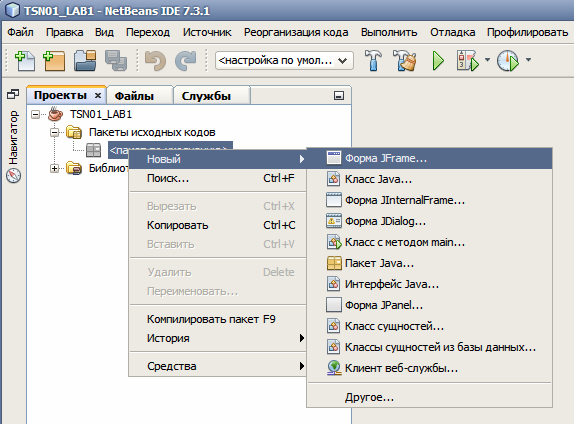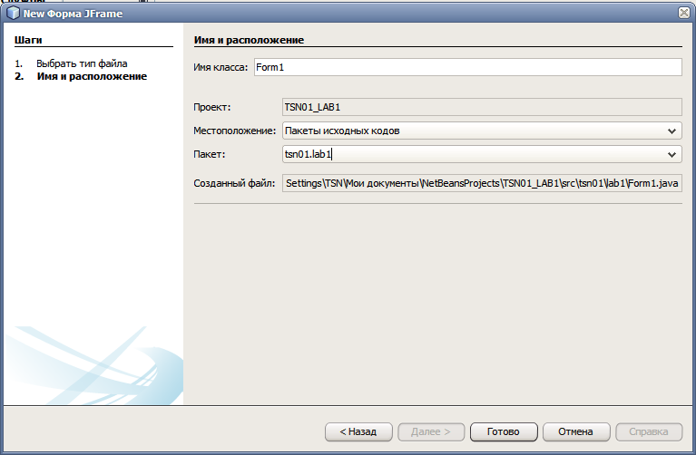 Далее, необходимо указать имя пакета. Имя пакета необходимо задать по шаблону «tsn01.lab1», где «tsn» – инициалы автора программы маленькими буквами, «01» – номер варианта (2 цифры), далее идет знак «.» (точка), слово «lab» маленькими буквами и номер лабораторной работы.