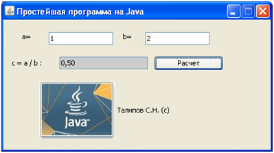 Рассмотрим пример кода для кнопки «Расчет» и интерфейс простейшей программы деления двух цифр: