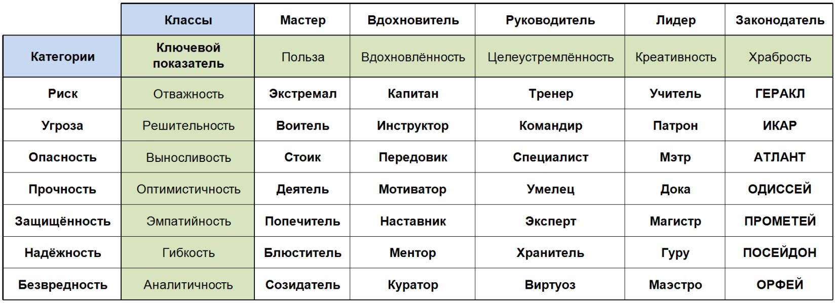 5 Классов по горизонтали – это степень комфортности во взаимодействии с людьми.
