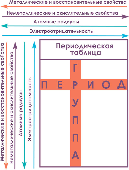 Рис. 1.2.1. Изменения свойств элементов периодической таблицы
