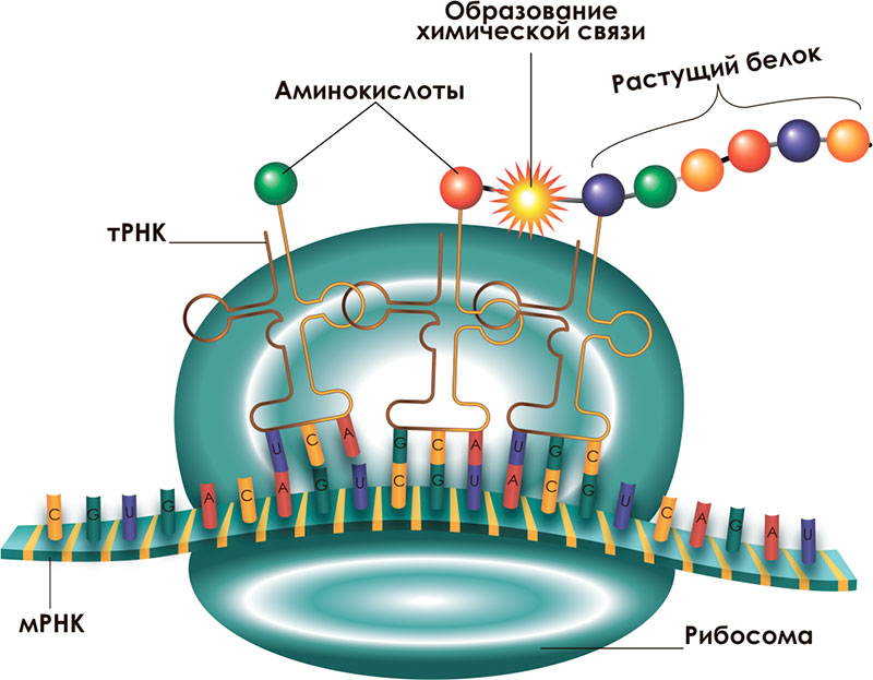 Рис. 1.2.9. Синтез белка в рибосоме