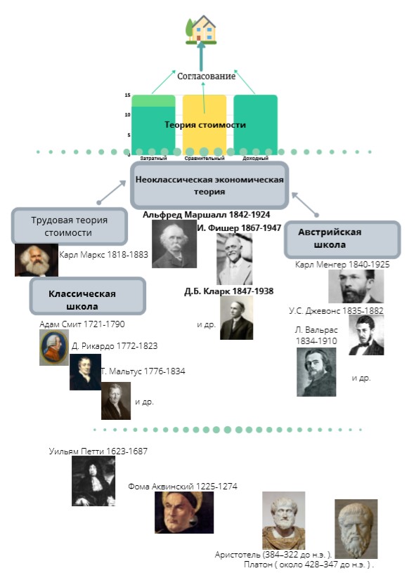 В постнеоклассической парадигме изменяется и теория стоимости. В этой теории уже нельзя механически согласовывать результаты трех подходов. В этой теории формируется суждение оценщика не только на базе наблюдаемых цен на эмпирическом уровне, но и учитывается пространственная онтология рынка недвижимости.
