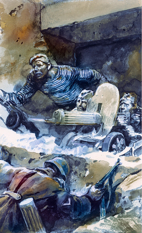 Летят гранаты. Долго длился упорный бой. Но вот у моряков вышел запас патронов. Нет больше бутылок с горючей жидкостью. Вот-вот и конец гранатам.