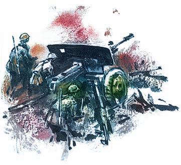Наблюдают артиллеристы. Ловко бросают бойцы гранаты. Считают артиллеристы подбитые танки: