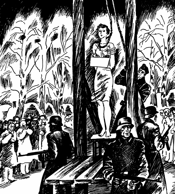 Девушку повели к виселице. Поставили на ящик. Набросили петлю на шею.