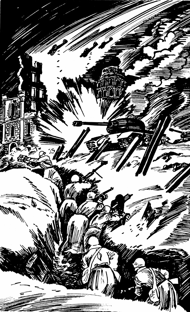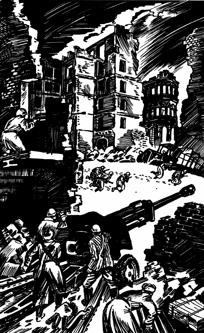 Думали фашисты – все покончено с домом. Двинулись на перекресток. Только вышли – огонь из развалин. Перебегает Таракуль от пулемета к пулемету: