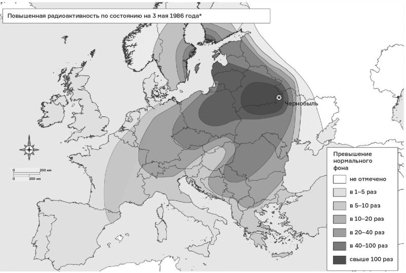 Расчеты синоптиков указывали на ветер с юго-востока – со стороны одной из двух ядерных сверхдержав. Какое несчастье могло ее постигнуть? СССР хранил молчание. Управление по радиационной безопасности связалось с коллегами из Москвы, но те уверяли: на их территории не происходило ничего, что могло бы вызвать радиоактивное загрязнение. При этом инспекторы в скандинавских странах и далее отмечали необычно высокий уровень радиации. На территории Швеции гамма-излучение превышало норму на 30–40 процентов, Норвегии – вдвое, Финляндии – в шесть раз.
