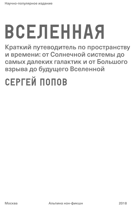 Эта книга, безусловно, не является учебником. Однако она дает целостное упорядоченное описание наших представлений о Вселенной и о методах ее исследования. Книга может послужить своего рода хрестоматией, важным дополнением к школьному курсу астрономии, а отдельные части будут полезны при преподавании курсов естествознания, в том числе и на вузовском уровне. Надеюсь, что любители астрономии и посетители астрономических кружков также найдут для себя много интересного и полезного, тем более что наличие базовых астрономических знаний поможет легче и лучше разобраться в ряде деталей. И, конечно, весь представленный материал может послужить основой для того, чтобы с бóльшим пониманием и удовольствием читать многочисленные современные научно-популярные книги по астрофизике (включая космологию, исследование Солнечной системы и вопросы поиска жизни во Вселенной). Поэтому, если вы хотите понять физику небесных тел несколько глубже, чем это обычно излагается в массовой популярной литературе, но не готовы сразу разбираться со множеством сложных формул, то эта книга для вас.
