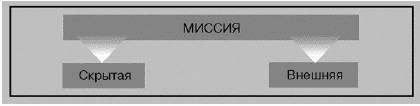 Скрытая миссияСкрытая миссия присутствует у организации с первого момента ее основания, но не формулируется. Она отражает принцип восприятия организации ее сотрудниками. Она может быть выявлена, если расспросить работников организации о ее целях и задачах.