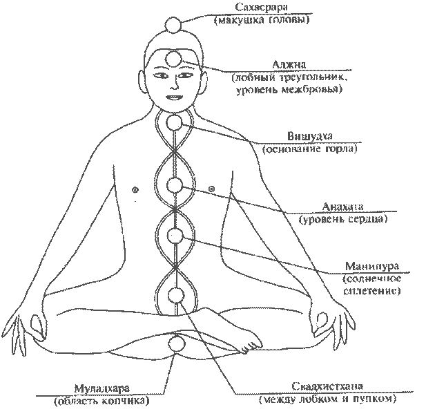 В организм человека поступает два потока энергии. Через ноги к нам поступает энергия, зарождающаяся в центре Земли. По сушумне она поднимается к верхнему энергетическому центру, расположенному на макушке головы. Другой поток космической энергии движется сверху вниз от энергетического центра на макушке головы через другие энергетические центры человека.